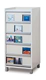 引き出し1杯あたりの収納数は最大105枚(外側・前面のディスプレイ部の3枚含む)ですが、CDソフトケースで収納すると1列(縦)に約100枚、3列全部埋めると約300枚入ります。引き出し4杯を同様に使うと…「最大1200枚収納可能」とか言えるのかも?